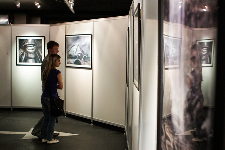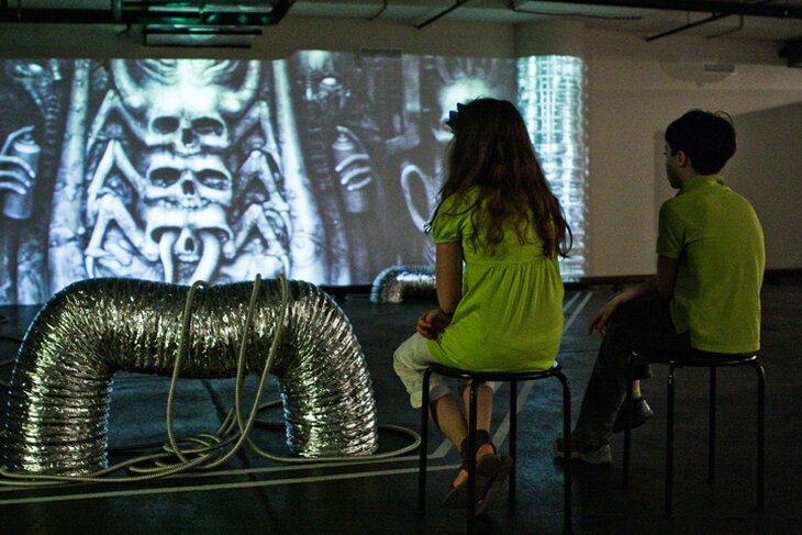 Тем, кто ждет выхода в прокат фильма "Прометей", своего рода приквела легендарного "Чужого", будет интересно посетить выставку создателя образа знаменитого инопланетного существа. В новом арт-пространстве Московского планетария, занявшем место подземной парковки, открылась выставка Ганса Руди Гигера. В столицу привезли больше полусотни его работ — литографии, шелкографии, гравюры из собрания художника и куратора проекта Марко Витцига. Представлены на выставке и работы, которые принесли Гигеру «Оскар» — за лучшие визуальные эффекты к фильму «Чужой». Выставку дополняют проекции и видеоинсталляции, созданные Max Mystic и Тарасом Гешем, лауреатом премии Курехина.