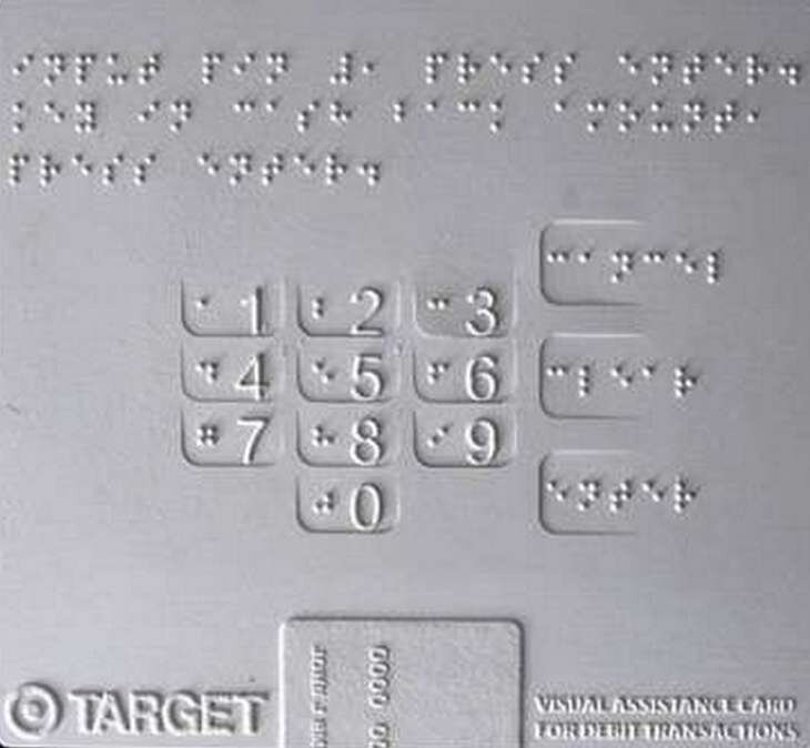 Для слабовидящих людей также разработан гаджет Visual Assistance Card, который позволяет вводить ПИН-код, не прибегая к посторонней помощи, таким образом сохраняется конфиденциальность данных.