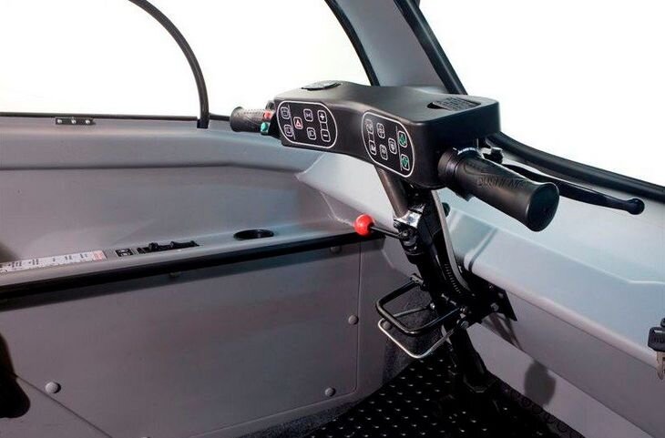 А преимуществ немало. Система управления Kenguru схожа велосипедной: ручные тормоза, руль, отсутствие педалей газа, тормоза и сцепления. Скорость регулируется с помощью нажатия кнопок, расположенных на руле.