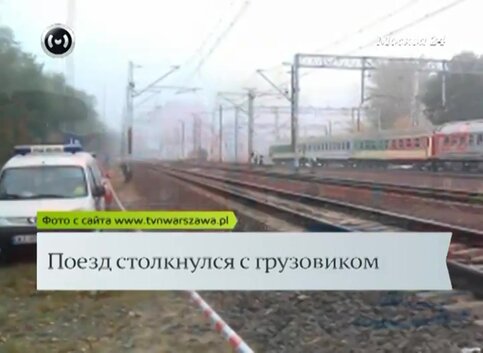 Скорый поезд Москва-Варшава столкнулся с грузовиком в пригороде польской столицы в пятницу утром. Пострадал водитель и два пассажира грузовика.