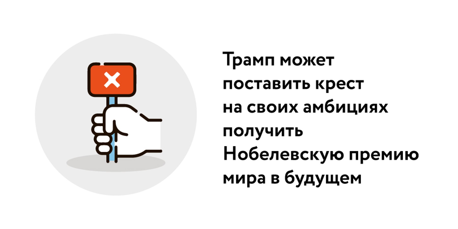 На основе этого Дробницкий предположил, что Трамп может поставить крест на своих амбициях получить Нобелевскую премию мира в будущем.