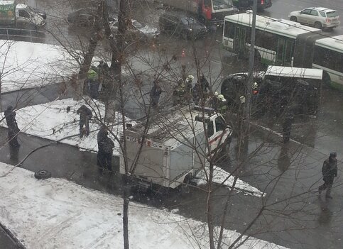 Как рассказали M24.ru в пресс-службе столичного главка полиции, около 12.30 в районе дома №64 в полицейский автомобиль врезалась иномарка, пострадали два человека, находившихся в кузове.