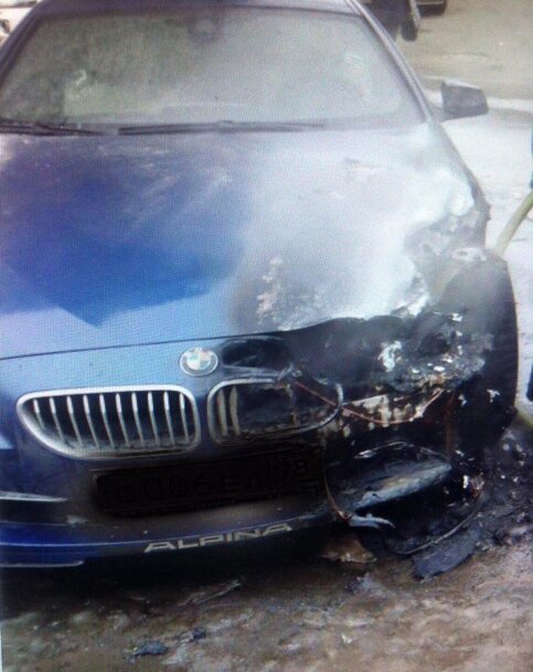 По некоторым данным, иномарку сначала чем-то облили, а затем подожгли. По данным управления МЧС по Петербургу, сообщение о пожаре поступило в 12:05. Как оказалось, в автомобиле марки Audi выгорел салон, а у припаркованного рядом BMW (как раз машина Шнуровой) обгорел капот.