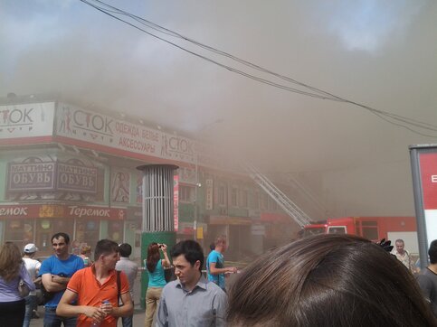 Пожар в торговом центре тушат с помощью вертолетов