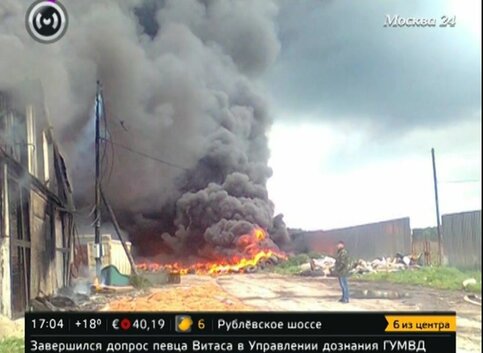 Крупный пожар произошел днем 21 мая на складе резины в Чеховском районе Подмосковья. Сообщение о возгорании в деревне Филипповское поступило на пульт спасателей около 13.45.