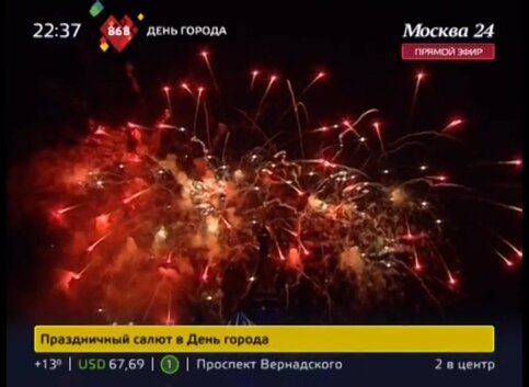 Кроме того, на 11 площадках запустили высотный фейерверк – стреляли на Новгородской улице, в городке имени Баумана, парке "Кузьминки", на Поклонной горе, в пустыре на улице Кадырова и других точках Москвы.