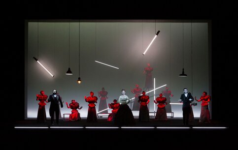 "Я неоднократно работал над этой партитурой, и каждый раз нахожу в ней новые смыслы, – цитирует TheatreHD дирижера-постановщика Теодора Курентзиса. – В этот раз мы поставили себе задачей добиться аутентичности в прямом смысле этого слова: очистить музыку от слоя интерпретаций, избавиться от представлений, навязанных нам традициями и восстановить оперу такой, как ее видел Верди. А он был очень щепетилен во всем: от нюансов партитуры до подбора солистов. Источников множество: и письма композитора, и материалы о премьере, о ее подготовке. Эта цель перекликается с подходом режиссера Боба Уилсона: он тоже трактует спектакли вопреки сложившимся традициям оперы середины XX века".