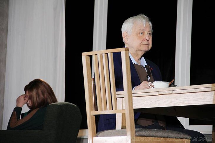 Удивительно, что Олег Табаков выбрал для бенефиса эту мрачную пьесу англичанки Николы Маколифф о мастере, который в шаге от смертного одра ждет маленького чуда – визита английской королевы. Кстати, реальная монаршая особа проявила интерес к юбилею Табакова и даже поблагодарила за роль, направив в МХТ письмо. Постановкой "Юбилея ювелира" занимался Константин Богомолов, и еще на стадии подготовки было понятно, что режиссер не намерен поставить классический спектакль-чествование. Да и материал к этому не особо располагал. Переработанную пьесу Богомолов облек в сдержанное высказывание о переплетающихся связях жизни и смерти.