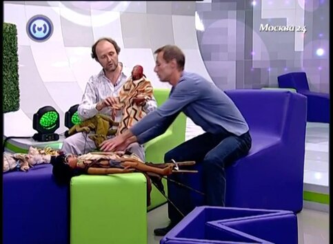 Постановкой "Синей птицы" занимался режиссер МХТ имени Чехова, заслуженный артист России Николай Скорик, рассказали "М24" актеры театра кукол имени Образцова Андрей Нечаев и Дмитрий Чернов.