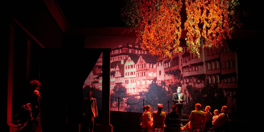 После завершения монументальной чеховской трилогии Театр имени Моссовета переключился на героев тургеневской прозы: в нынешнем сезоне две премьеры по произведениям "летописца русской интеллигенции" – молодой режиссер Иван Орлов выпустил на сцене "Под крышей" спектакль "Месяц в деревне", на основной – Юрий Еремин поставил "Baden-Баден" по роману "Дым".