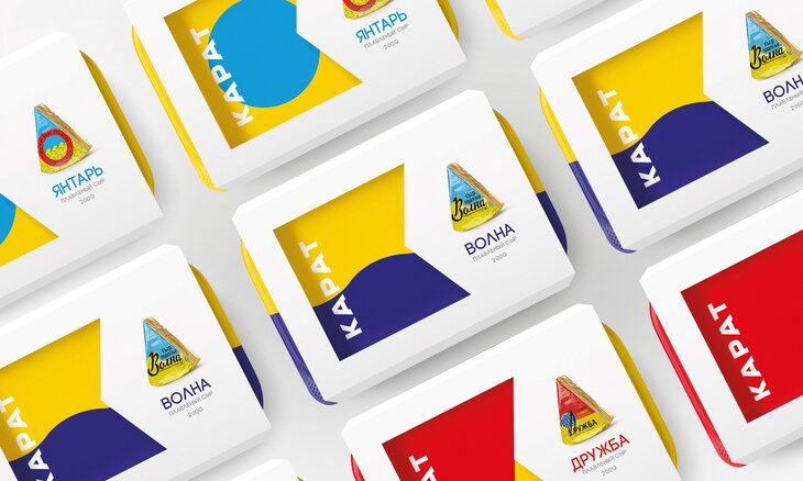 В новом дизайне "Карат" отказался от советского стиля плавленых сыров – глобуса, размашистых букв в названии, и сохранил только узнаваемые цвета: красный-желтый для "Дружбы", сине-желтый для "Волны", бирюзово-желтый для "Янтаря".