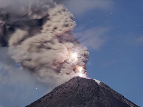 Выброшенный вулканом пепел распространился в северо-восточном направлении от него.