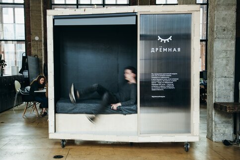 "Дремная" – это модуль для сна на работе. Мы создали этот проект и продаем их в офисы Москвы и России. Сейчас существует готовое решение "#Дремная Open Desk", в нем используются последние тенденции дизайна. Однако этот модуль подходит только для компаний, у которых есть большие пространства", – сказал Мельников.