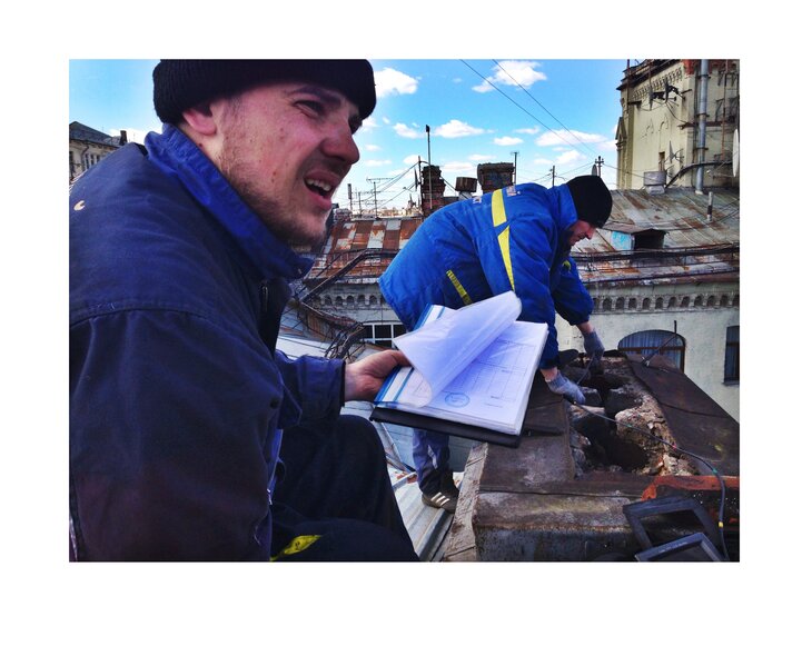 Казалось бы – что трубочистам делать "внизу", где нет покатых железных настилов и дымоходных выходов? На самом деле, огромная часть их работы связана именно с "земными" заботами. К примеру, перед тем, как отправиться на крышу дома на Сретенском бульваре, трубочисты несколько часов осматривают сам камин клиентки, проверяя его работоспособность. Попутно ребята то и дело черкают заметки на распечатанных схемах и чертежах дымохода.