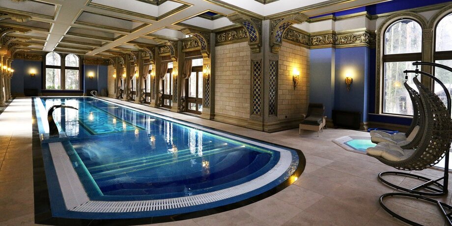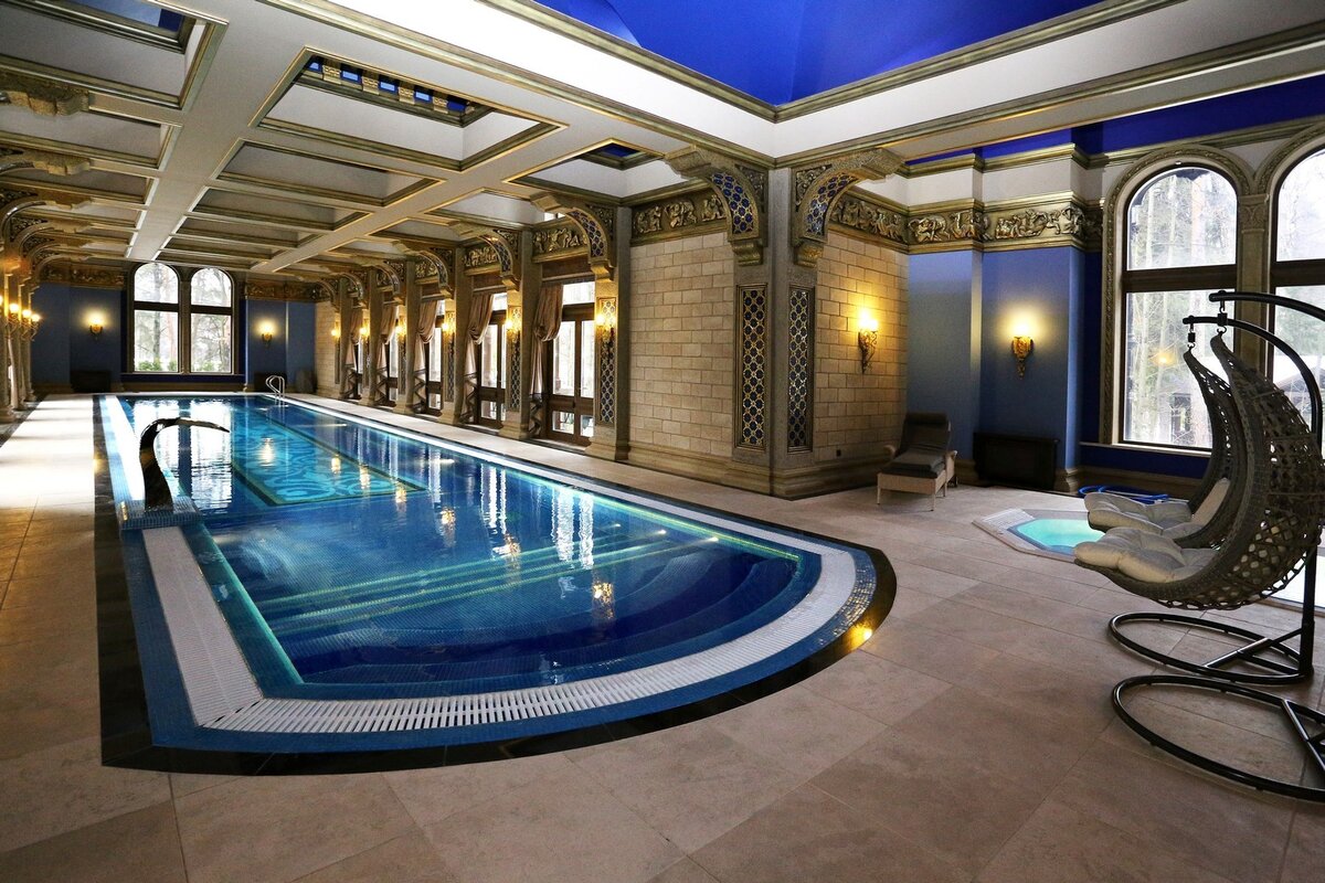 В особняке три этажа, семь спален, 10 санузлов. Будущий владелец дома получит собственные купель, сауну, хамам и тренажерный зал. Кроме того, в здании есть зимний сад, бассейн и библиотека.