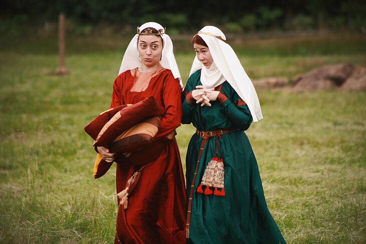 Основное развлечение женщины происходит до фестиваля: они кроят, шьют (часто на всю команду), изучают книги и заботятся о том, чтобы во время выезда никто ничего не забыл. Девушки, которые реконструируют степные народы или ту же ранятину, имеют право участвовать в боях, потому что это не противоречит историческим источникам. К слову, если что-то хоть единожды упоминалось в одном из древних текстов или было изображено на древней гравюре – это уже можно реализовывать. Таков принцип реконструкции: каждый день археологи и ученые узнают что-то новое о той или иной эпохе, это сразу же подхватывается движением – создаются новые украшения (на примере найденных на раскопках), шьются костюмы, женщины допускаются до конных боев или мужчины изучают прецеденты поведения тех исторических личностей, имена которых они взяли. Чаще, конечно, реконструкторы не обращаются к образам реально живших людей, а создают героя древности из самого себя.