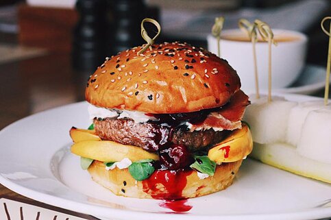 Оригинальность названий в меню этой бургерной – под стать размерам самих бургеров: "Я бы распилила "Брянского парня" пополам, ибо мне такая порция "великовата". Другие гости предупреждают об опасности переесть и часто упоминают об очередях. Не будут же люди стоять за маленькими бургерами! Само заведение – в стиле "лофт": "Можно в ожидании заказа просто походить по бургерной, чтобы посмотреть на оформление места. Плакаты на стенах заслуживают отдельного внимания".