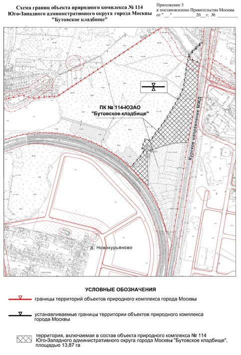 "Проектными решениями предусмотрено расширение территории кладбища. Проектируемое количество мест захоронений – восемь тысяч штук. Целью расширения Бутовского кладбища является приспособление кладбища для удобного посещения, сохранение архитектурно-ландшафтной среды захоронений и рациональное размещение объектов похоронного обслуживания", – говорится в документах МКА.