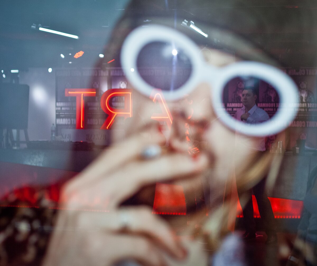 Совпало сразу несколько вещей: мода, открытость и свобода Курта, удача – благодаря которой я увидел, как светоаппаратура отразилась в его очках, и решил, что это будет интересным элементом, придающим новый смысл.