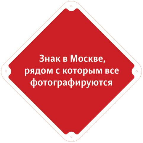 Столичный знак отличается от арт-объектов, установленных в других городах в рамках проекта "Знаки в городах": авторы стараются использовать в оформлении разных знаков разные цвета. Так, для Москвы использовали красный фон, а сам указатель закреплен на столбе черного цвета.