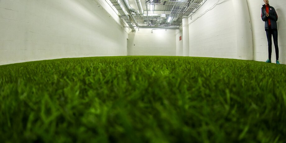 Газон позволяет играть в футбол даже зимой при температуре до минус 15 градусов, благодаря системе подогрева. На глубине 25 сантиметров проходят трубы с жидким теплоносителем, который поддерживает температуру плюс 15–18 градусов у корней. Такая температура нужна для роста натурального газона.