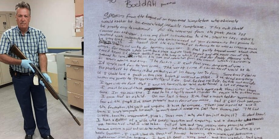 Специалисты проанализировали и "предсмертную записку". Они сделали вывод, что ее часть действительно принадлежала Курту – в ней говорилось о желании уйти из группы. Нижние строки, по их мнению, написаны другим почерком и как будто добавлены позже.