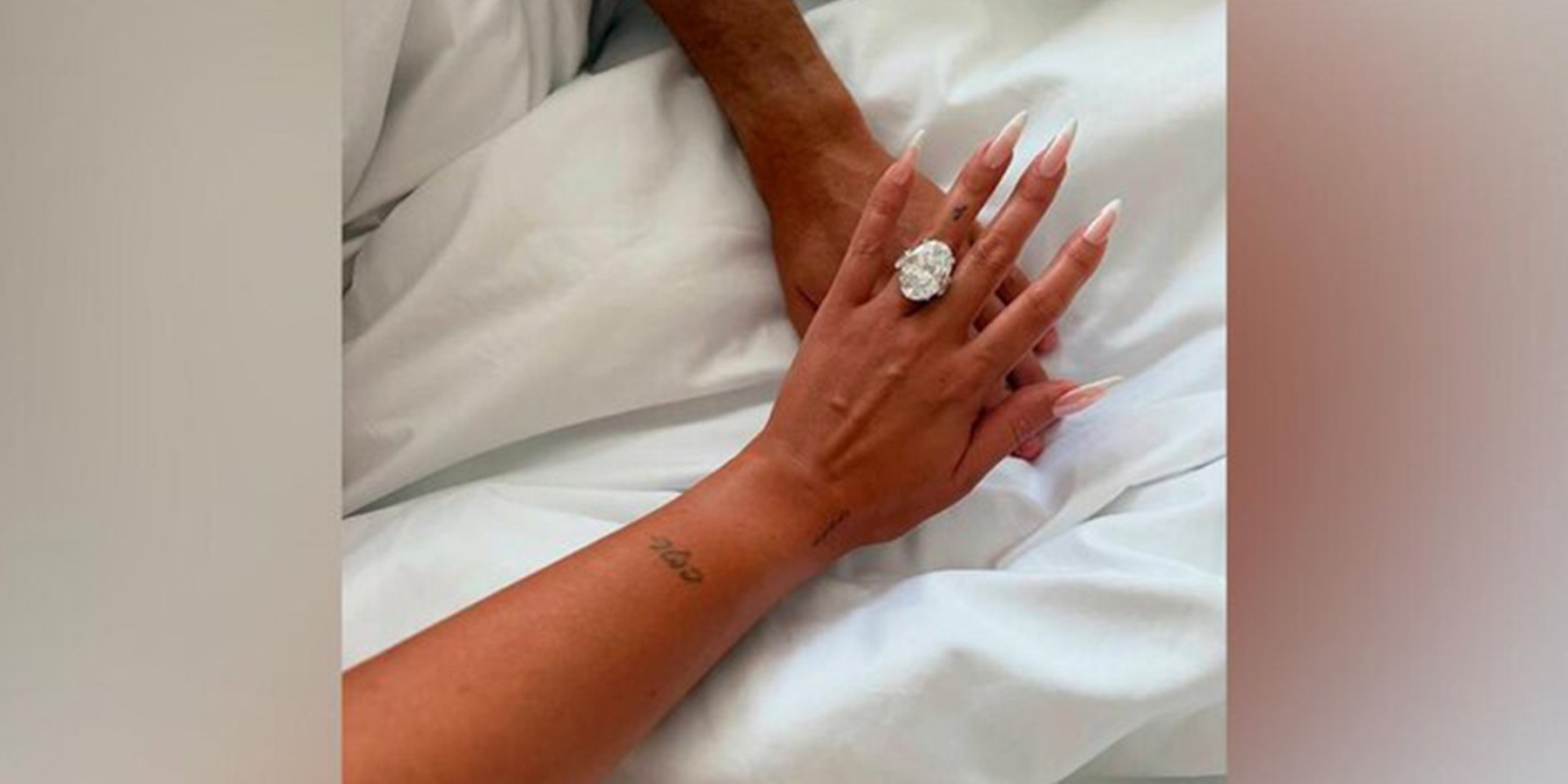 Одно из них, помолвочное, имеет круглый бриллиант весом 20 карат и стоит около 2,5 миллиона долларов. Второе украшение – обручальное от ювелира Лоррейн Шварц: камень там овальной формы. Ряд изданий отмечали, что вес кольца составляет около 45 карат, цена за такое украшение колеблется от 4 до 6 миллионов долларов.