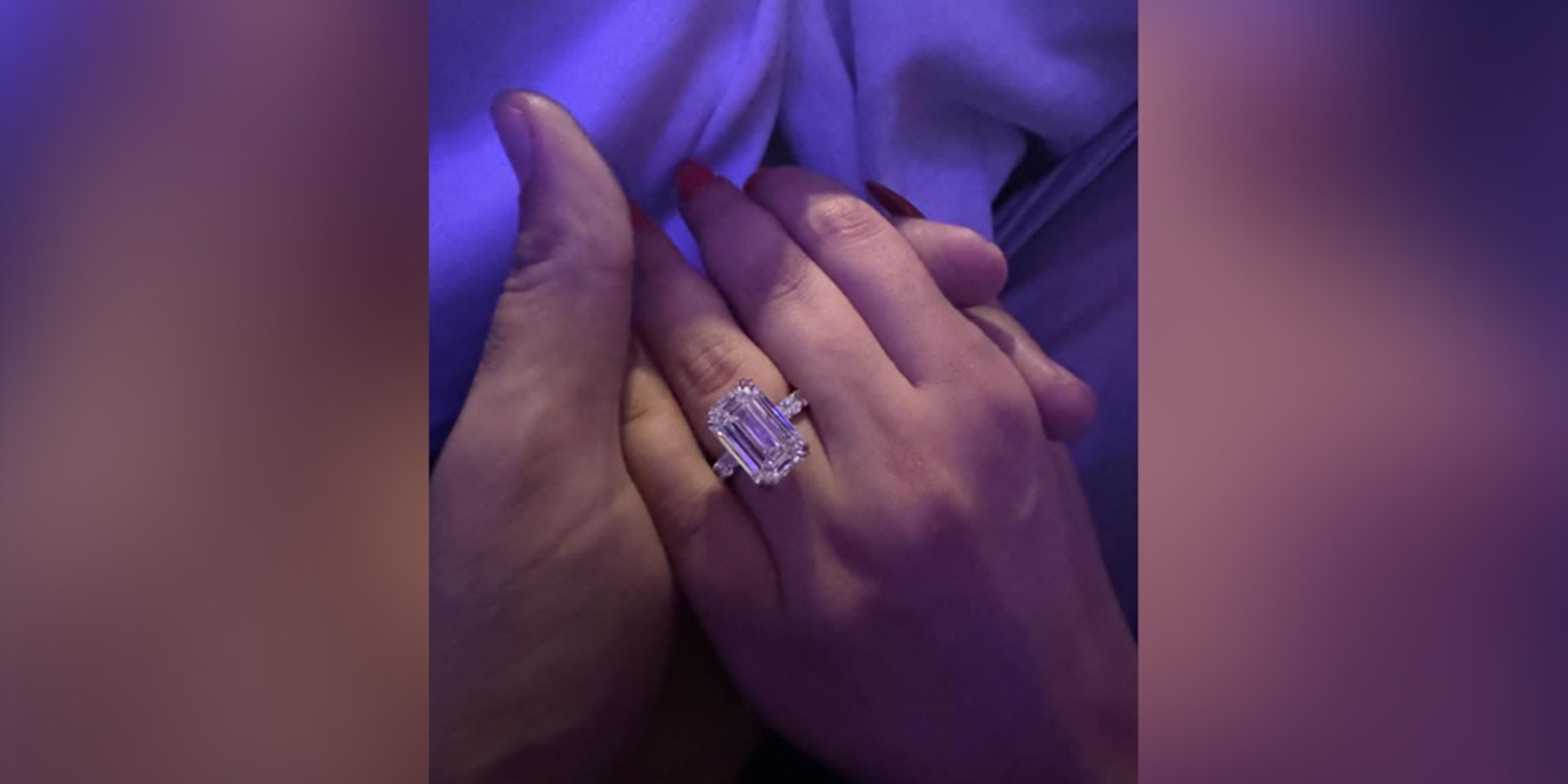 Кроме того, модель выложила видео, на котором можно детально разглядеть кольцо: камень овальной формы украшен мелкими бриллиантами.