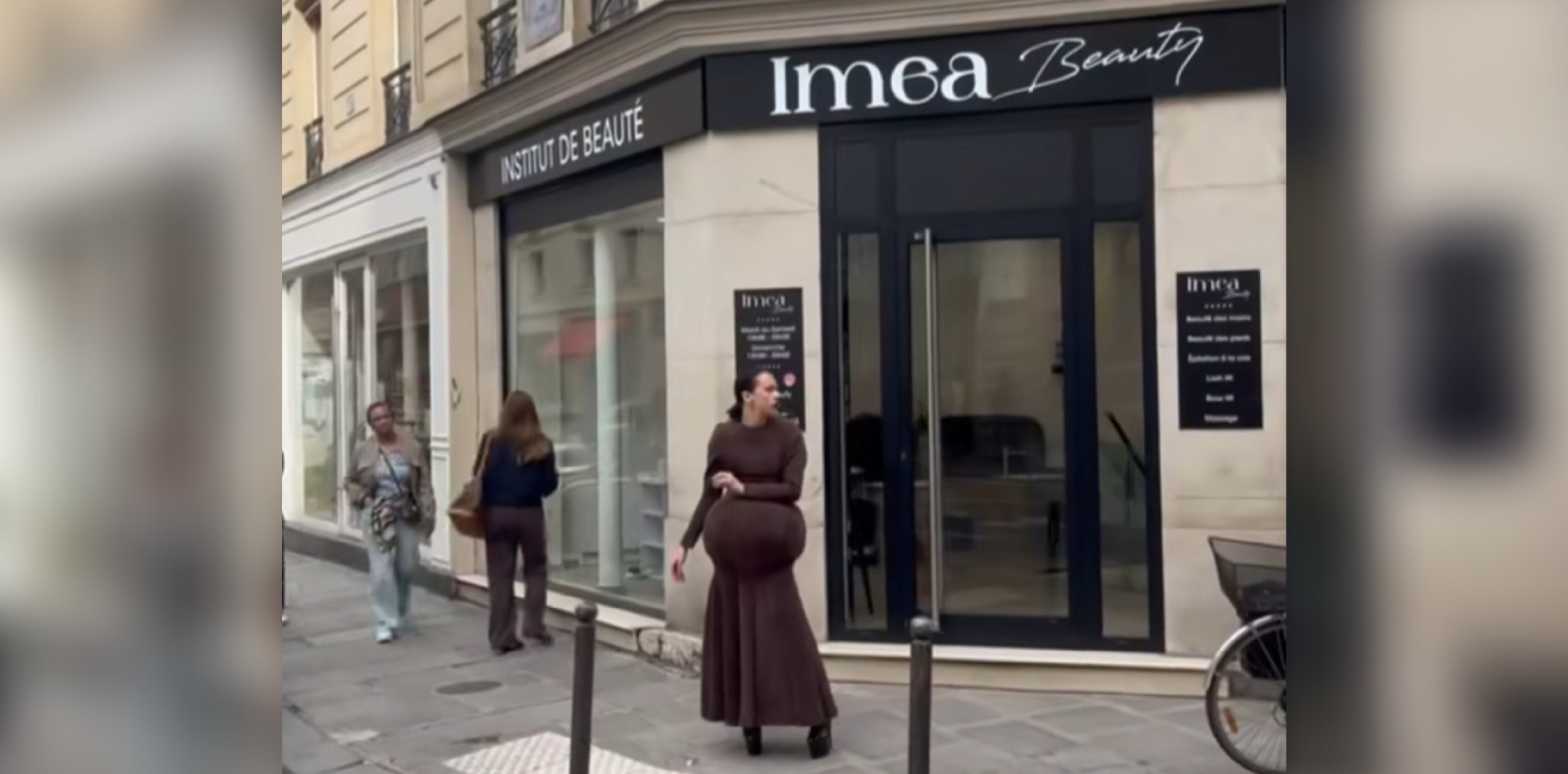 Катя IOWA (настоящее имя – Екатерина Иванчикова) во время Недели моды попробовала себя в необычном амплуа. Девушка поделилась в соцсетях фотографиями, где позирует на парижских улицах в экстравагантном коричневом вельветовом платье с объемными вставками-подушками в районе живота и спины. Образ завершал яркий макияж с синей помадой.