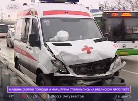 Машина скорой помощи и маршрутное такси столкнулись на Рязанском проспекте, сообщает телеканал "Москва 24".