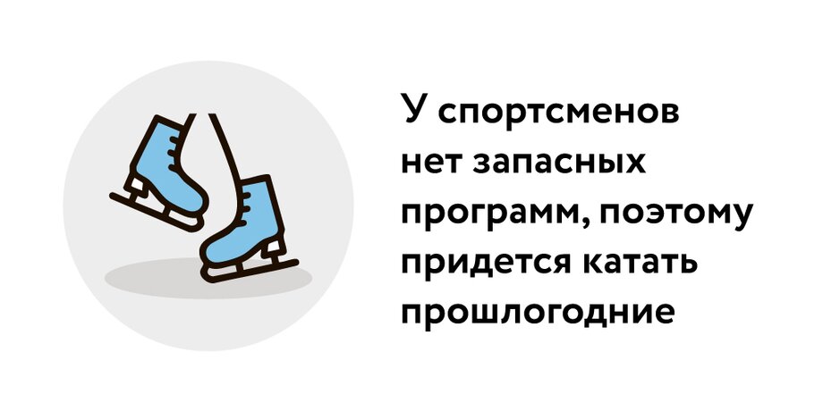 Двукратная чемпионка мира по фигурному катанию, олимпийский призер Ирина Слуцкая в разговоре с 78.ru подчеркнула, что у спортсменов нет запасных программ, поэтому в таком случае придется катать прошлогодние. Саму ситуацию она назвала очень тяжелой, и пока не понимает, как из нее можно выйти.