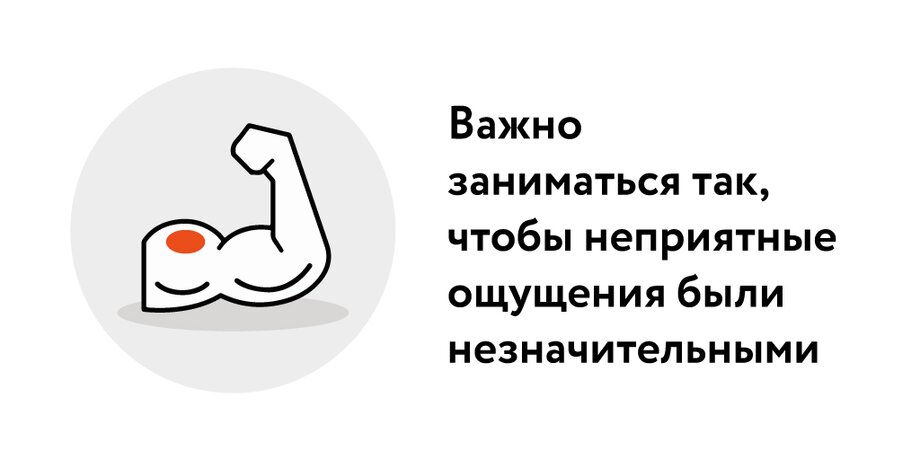 Также важно понимать (в первую очередь новичкам): боль в следующие дни после занятий в тех мышцах, которые тренировали, – та самая физиологическая норма, без которой не будет результата. Но важно заниматься так, чтобы неприятные ощущения были незначительными, особенно в первые две недели.