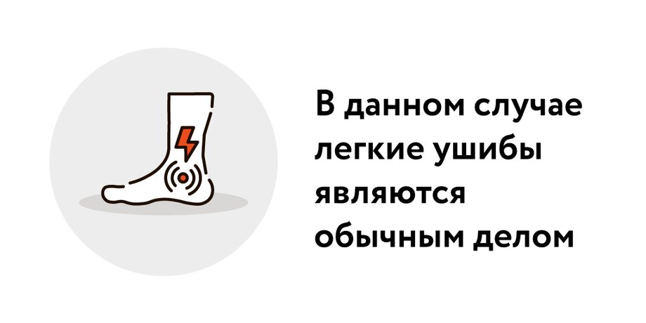 В данном случае легкие ушибы действительно являются обычным делом. Если при их получении ваши движения остаются без ограничений и болевого синдрома, просто стоит прекратить выполнять задание, чтобы не спровоцировать более серьезную травму. А вот при сильных ушибах, вывихах и растяжениях неприятные ощущения выражены четко: не просто возникает боль, но и снижается подвижность. В этом случае нужно немедленно прекратить занятия, приложить холод к травмированной области и обратиться к врачу.