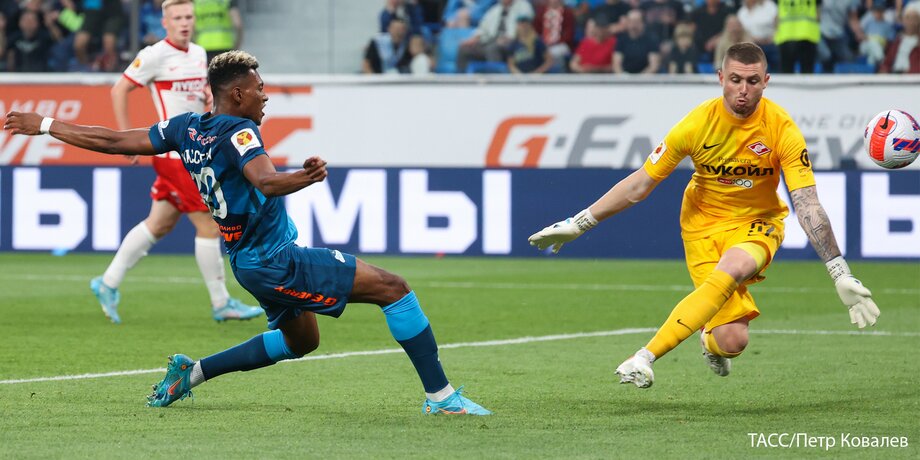 Всего через пять минут "Спартак" пропустил второй. Вендел ускорился по левому флангу, выдал снаряд на Дугласа Сантоса, а тот в касание вывел Малкома один на один с Александром Селиховым. Десятый номер "Зенита" с легкостью обошел голкипера "Спартака" и закатил мяч в пустые ворота. До перерыва московский клуб мог отыграть хотя бы один гол. На 37-й минуте с линии штрафной пробил Соболев, но снаряд прошел мимо.