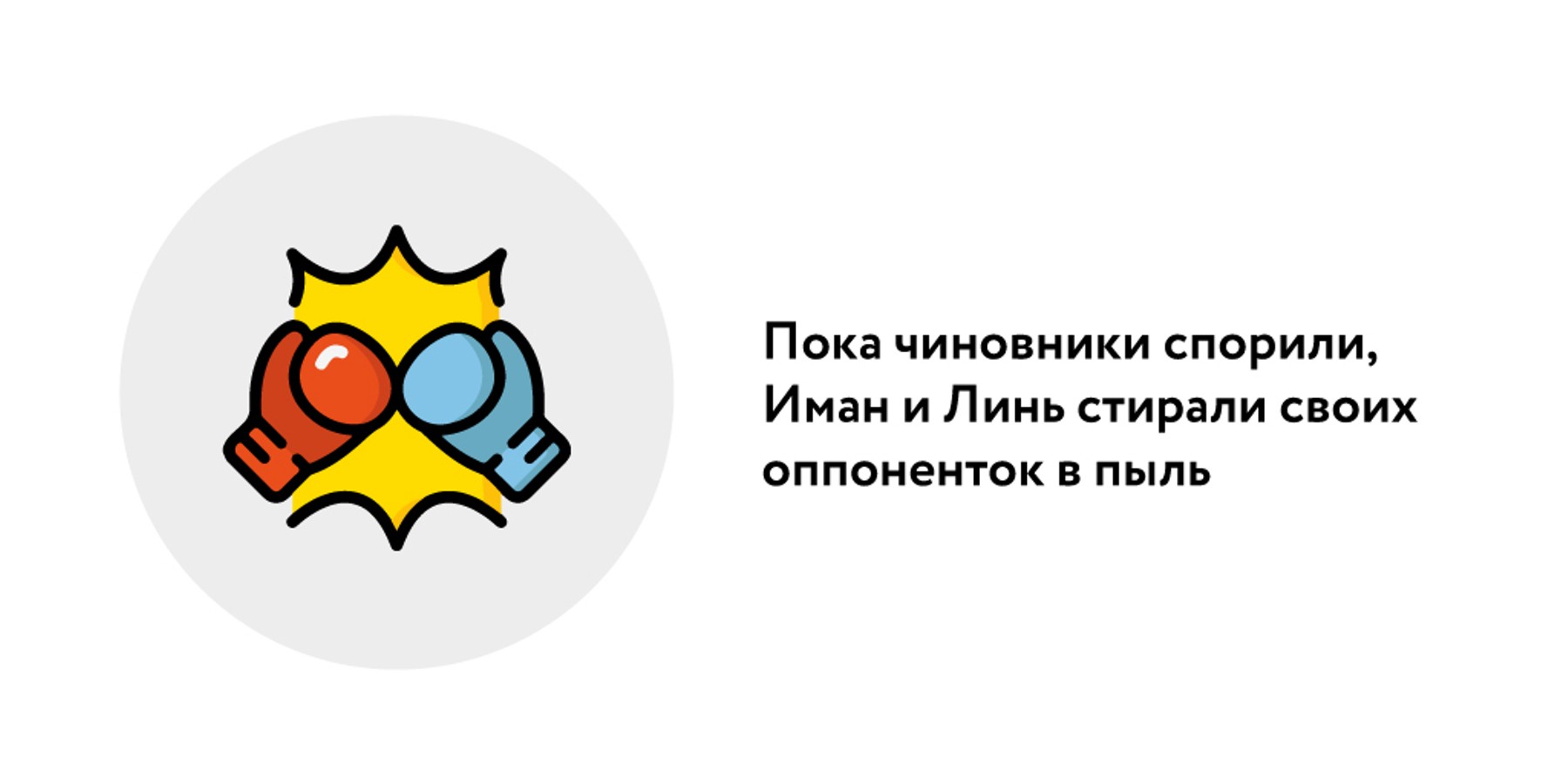 Пока чиновники спорили, Иман и Линь стирали своих оппоненток в пыль. Та же Хелиф первую же соперницу – итальянку Анджелу Карини – победила всего за 46 секунд. Другие тоже не смогли дать достойный отпор. В итоге представительница Алжира заработала золото Олимпиады, победив в финале китаянку Ян Лю. Уроженка Тайваня тоже дошла до финала, гарантировав себе как минимум серебро Игр. Свой поединок Юйтин проведет 10 августа против спортсменки из Польши Юлии Шереметы.