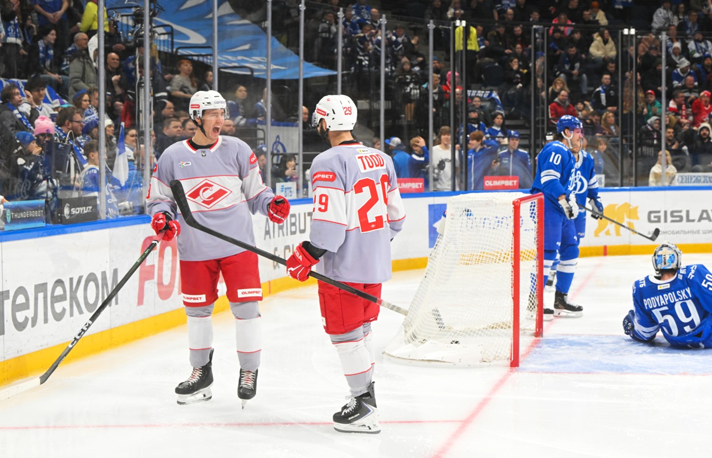 Но на 26-й защитник "Динамо" Кирилл Адамчук с паса Никиты Гусева бросил от синей линии, а подкативший на пятак форвард Артем Швец-Роговой здорово подставил клюшку, – 1:2. А затем у соперника начались проблемы с дисциплиной: всего за минуту удаления умудрились схлопотать сразу три "спартаковца" – Кристиан Ярош (обоюдно с форвардом "Динамо" Максимом Комтуа), Джозеф Кин и Иван Морозов.