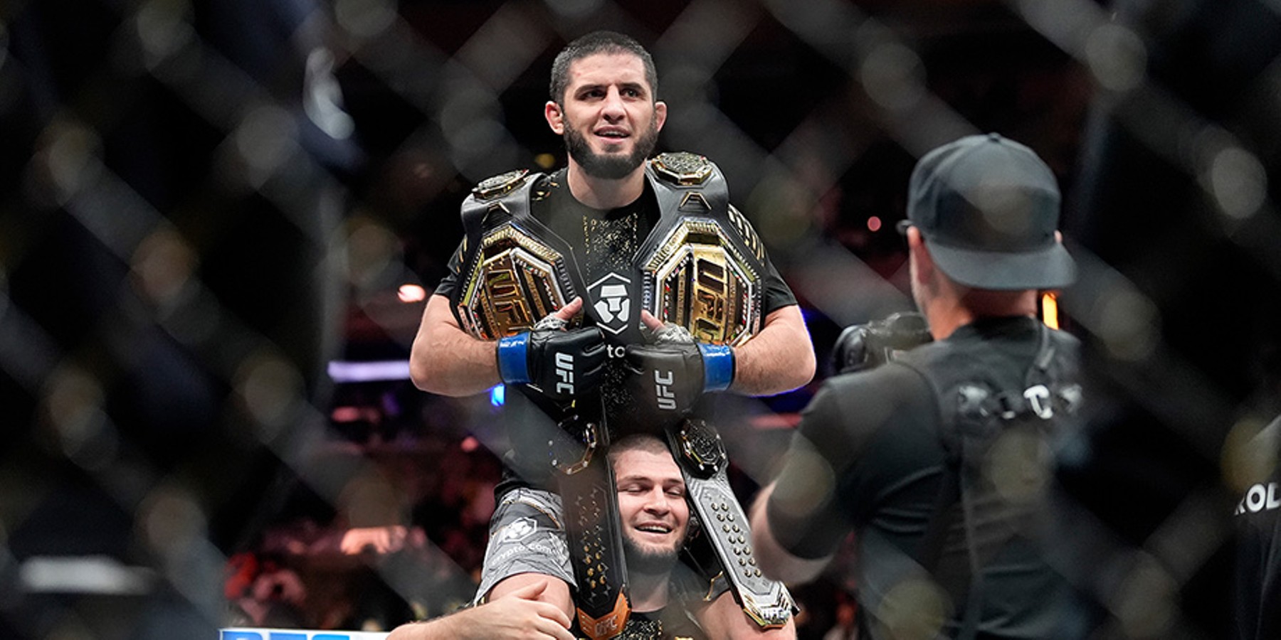 Махачев забрал новый титул в UFC единогласным решением судей и стал первым россиянином с двумя поясами промоушена в разных весовых категориях. Всего же в истории организации Ислам – 11-й, кому покорилось это достижение. Как только на плечах Махачева оказалось два пояса, уже на своих плечах вокруг октагона его пронес Хабиб Нурмагомедов.