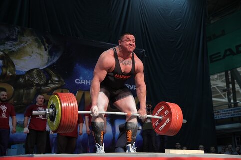 – 360 килограммов присед, 230 килограммов жим штанги лежа и 417,5 килограмма становой тяги. Общая сумма по трем упражнениям – 1007,5 килограмма. Назвать себя пауэрлифтером я не могу, ведь для меня, как для штангиста, это подсобные в тяжелой атлетике упражнения, но раз народ называет пауэрлифтером, значит так тому и быть. За всю жизнь я выступил в пауэрлифтинге чуть больше 10 раз.