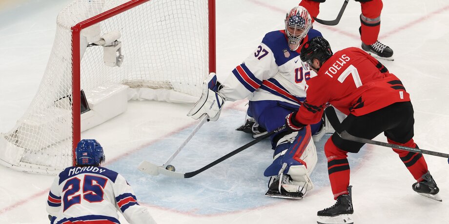 В то же время в последней 20-минутке американцев чуток "подтащили" судьи. Сначала арбитры не заметили, как на льду у "звездно-полосатых" оказалось больше пяти человек, и удаление не последовало. Затем в концовке периода форвард сборной Канады Сэм Беннетт получил четырехминутное удаление за удар клюшкой по лицу нападающего американцев Джека Хьюза, а немного спустя тому же Хьюзу за похожее действие дали только две. Но так или иначе, огненный финал получил продолжение в овертайме.