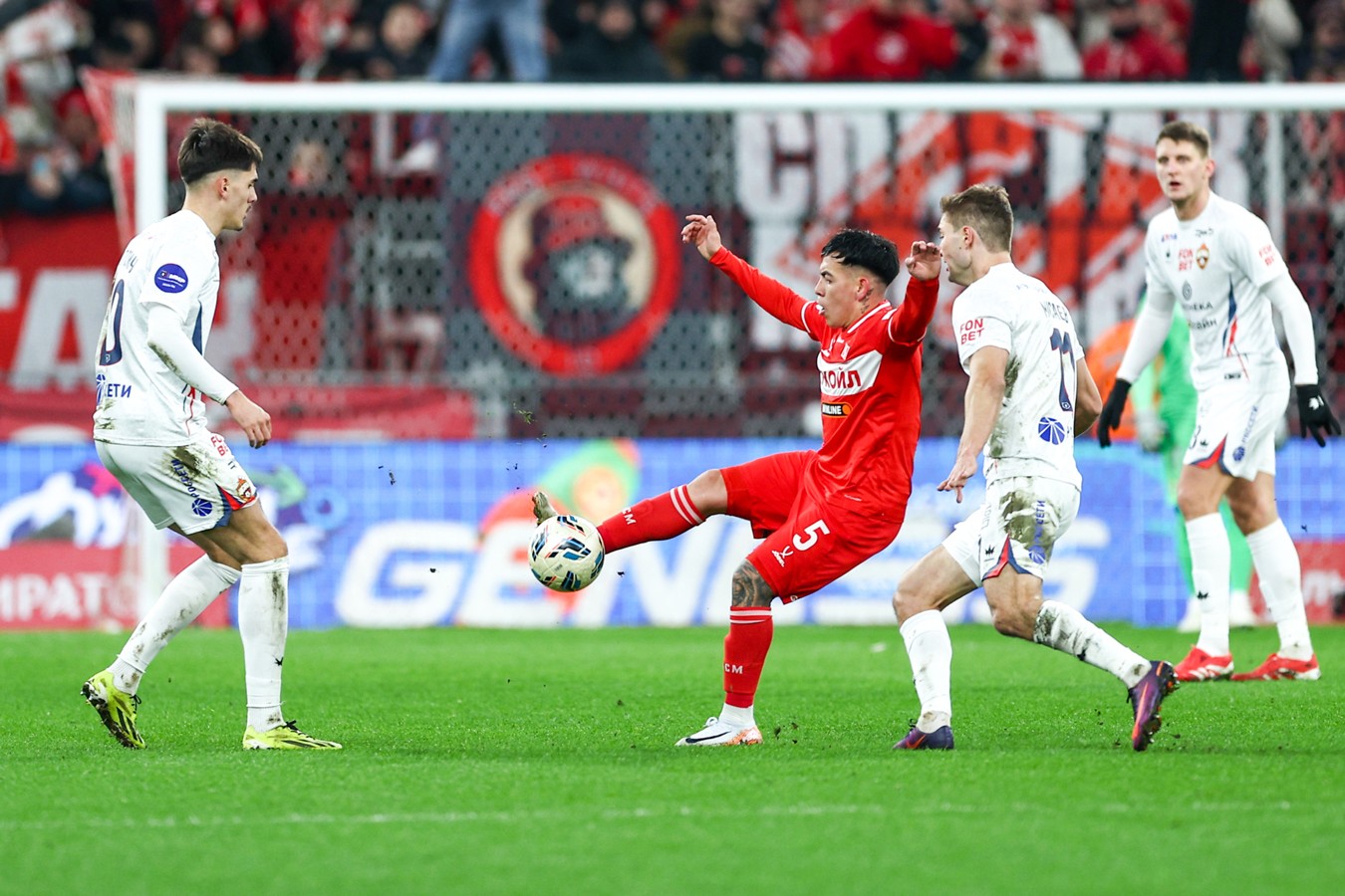 У "Спартака" же в нападении выделялся дисбаланс на флангах: правый с Романом Зобниным и Даниилом Денисовым на атаку почти не работал, левый с Маркиньосом и Игорем Дмитриевым – разрывал. В этом плане показателен момент на 14-й минуте, когда Дмитриев покатил из своей зоны в центр штрафной под удар Манфреду Угальде: первый его выстрел заблокировал защитник гостей Матвей Лукин, второй с нерабочей левой полетел мимо створа.