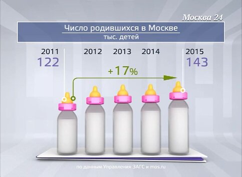 "В 2015 году родились 1 миллион 941 тысяч младенцев, что на 2 тысячи меньше, чем в 2014 году, снижение составило 0,1 процента", – цитирует его Агентство "Москва".
