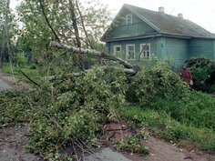 Непогода коснулась также и столицы: в ряде районов города ветром были повалены деревья.