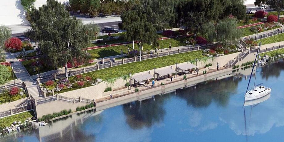 Длина набережной составит три километра и построена она будет с учетом передвижения пешеходов, велосипедистов и автомобилистов. Между Москвой-рекой и проезжей частью сохранится зеленая полоса, на которой планируется возвести многоуровневый линейный парк.