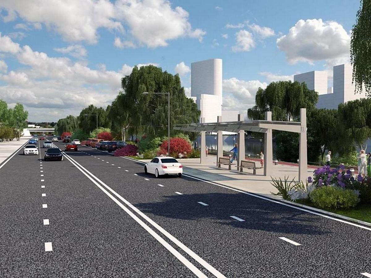 На проезжей части организуют четыре – шесть полос движения, а крайние правые выделят для общественного транспорта. Вдоль проезжей части будут организованы парковочные карманы, стоянки для автобусов и такси, остановки общественного транспорта. Новая улично-дорожная сеть обеспечит транспортную связь существующих и строящихся кварталов с Деловым центром и центральной зоной города.