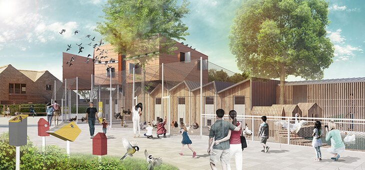 На территории зоопарка построят новую ферму с контактно-обучающей зоной, голубятню, авиарий, стеклянный вольер для кроликов, здание инфоцентра с кафе, сувенирный магазин, игровые площадки для животных и детские игровые площадки.