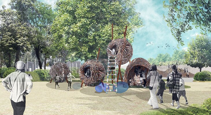 Напротив авиария построят зону с домашней птицей, куда поселят гусей, уток, куриц, а для голубей сделают большую голубятню. Для детей здесь устроят экспозицию гнезд, которые делают сами птицы, а также можно будет посмотреть на птичьи домики: скворечники, дуплянки, созданные людьми. Вблизи экспозиции будет очередная детская площадка с несколькими видами гнезд, которые дети смогут рассмотреть, потрогать и даже залезть в них.
