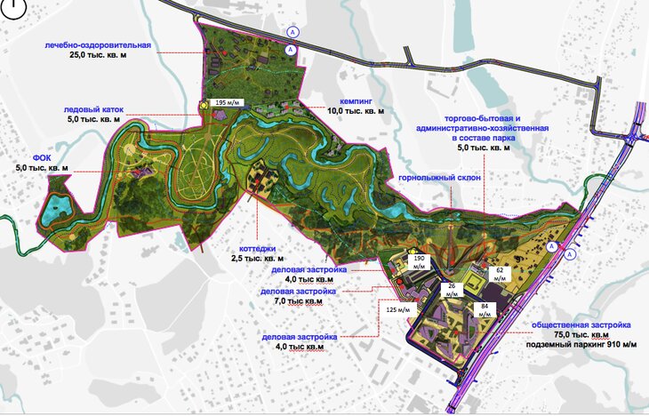 Парк построят в северо-восточной части поселения Краснопахорское в долине реки Пахра. На территории появится спортивный комплекс с ледовым катком, физкультурно-оздоровительным комплексом, горнолыжным склоном и с кэмпингом на 21 домик. В парке оборудуют велосипедные и пешеходные дорожки.