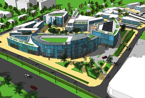 Также запланировано строительство гостиницы, магазинов и технопарка общей площадью 169,4 тысячи квадратных метров.