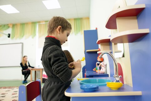 В групповой ячейке будет находиться раздвижная перегородка со смежной спальней, раздевальной, буфетной и туалетной. В садике также разместят физкультурный и музыкальный залы, столярную мастерскую, медицинские помещения.