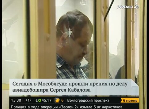 5 декабря в Московском областном суде прошли прения сторон по резонансному делу авиадебошира Кабалова, в январе этого года устроившего драку в самолете, следовавшем рейсом Москва-Хургада, сообщает телеканал "Москва 24".
